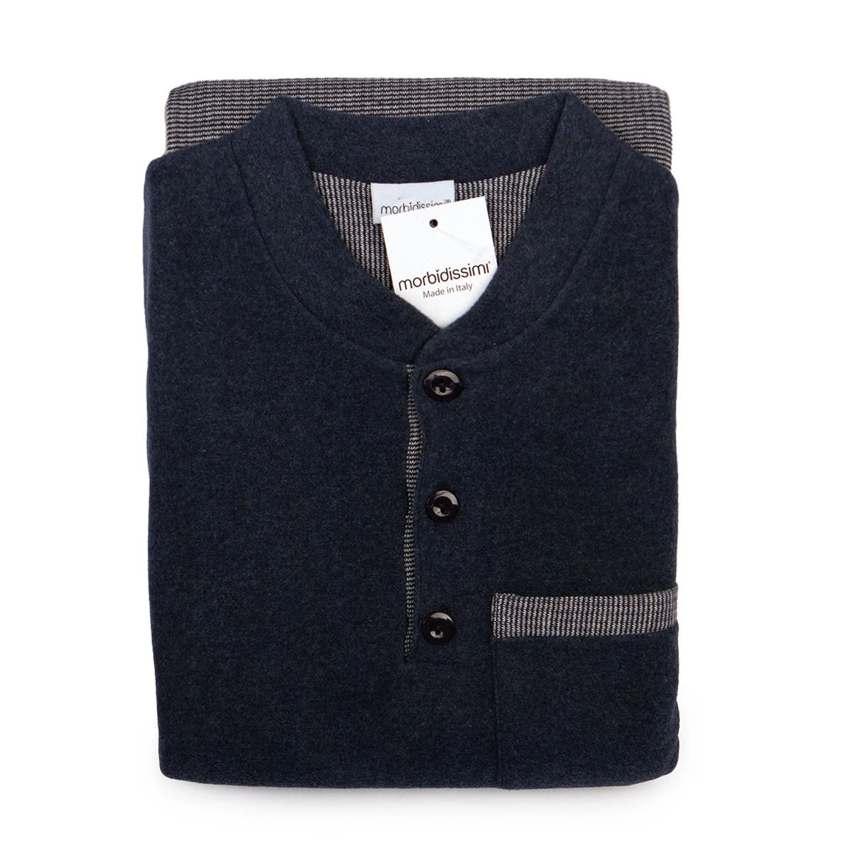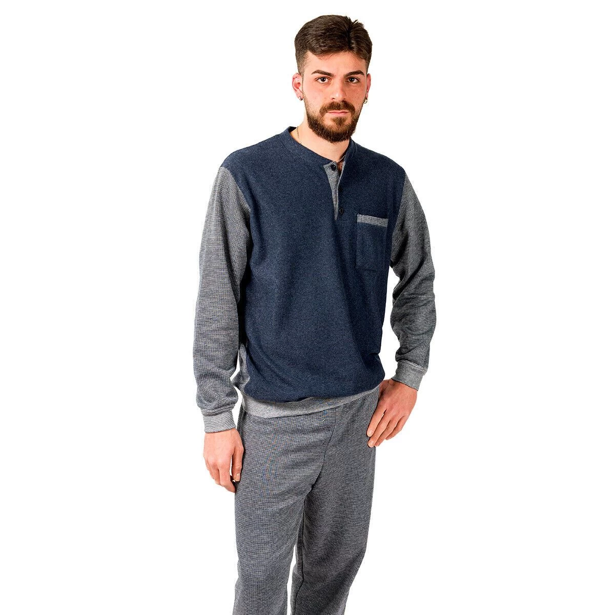 | Dettagli | La confezione contiene un pigiama invernale da uomo composto da: 1 maglia con scollo serafino, bottoncini e taschino sul petto 1 pantalone lungo trama geometrica con elastico in vita e polsini Morbido e soffice punto milano Ideale per il periodo invernale Made in Italy |