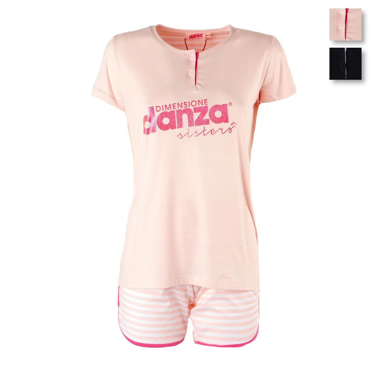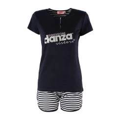 Il pratico e comodo pigiama estivo Dimensione Danza con i suoi pantaloncini a righe e i suoi colori è originale e sbarazzino. Realizzato in fresco cotone jersey, è il capo ideale da indossare nei periodi più caldi dell’anno.
