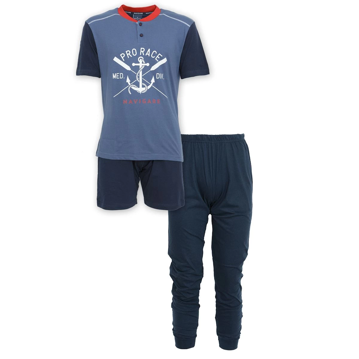 Tre pezzi anzichè due! E’ la novità del pigiama per uomo Navigare. La scelta è semplice tra pantalone lungo e corto, basta guardare il meteo e percepire la temperatura. Due acquisti in uno.