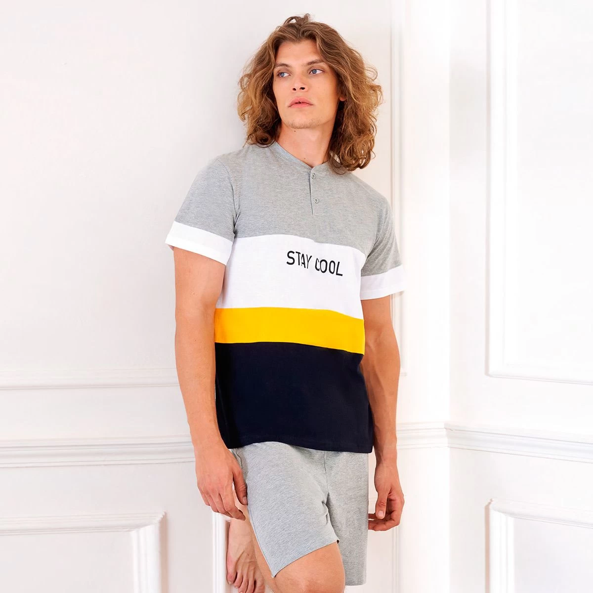 Vivace e dinamico il pigiama da uomo di Oronero è un capo molto versatile. Lo scollo con bottoncini è giovanile e pratico.