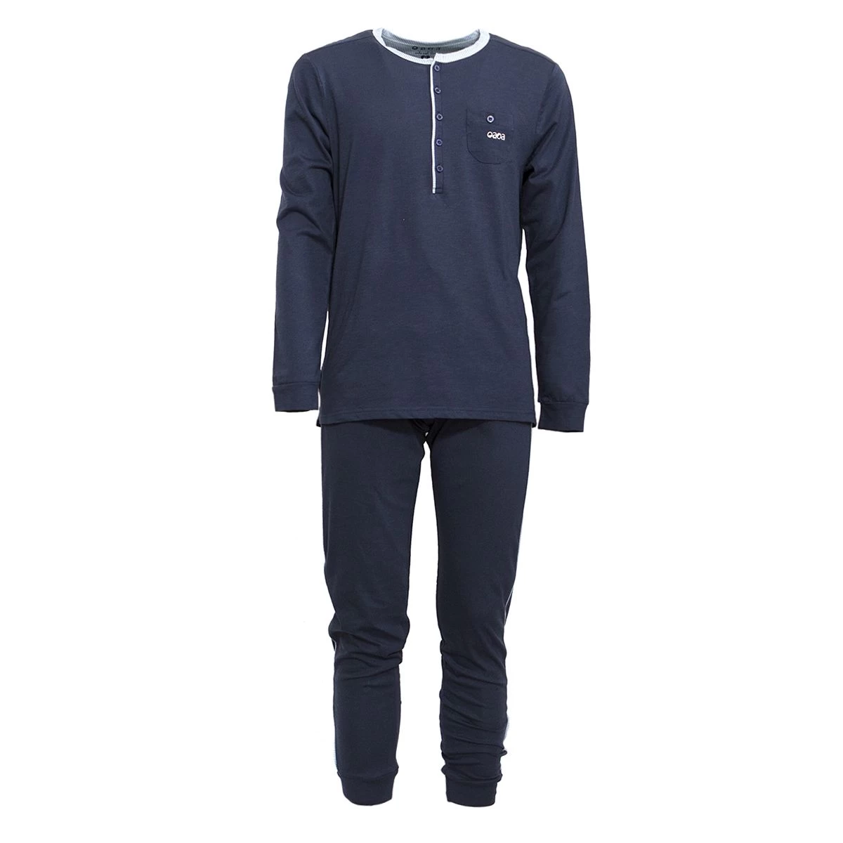 | Dettagli | La confezione contiene un pigiama da uomo composto da: 1 maglia a manica lunga girocollo serafino, comodi polsini elasticizzati e taschino 1 pantalone lungo a tinta unita con laccio regolabile in vita, tasche laterali e polsini elasticizzati Cotone, fresco e leggero, adatto per tutto l’anno Confezionato in una scatola stampata |
