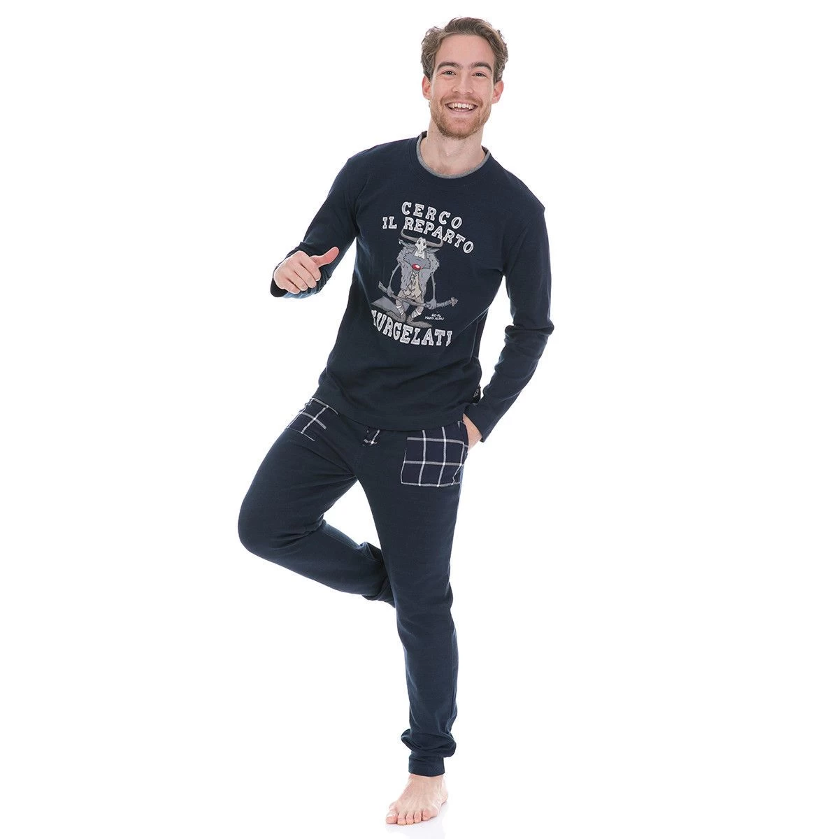 | Dettagli | La confezione contiene un pigiama per uomo composto da: 1 maglia a manica lunga girocollo e stampa centrale 1 pantalone tinta unita, elastico in vita e chiusura con bottoni, polsini elasticizzati 1 sacco porta pigiama Tasche laterali in tessuto scozzese a contrasto Applicazioni in tessuto tinto filo Sportivo e casual Adatto anche per stare in casa Ideale per il periodo invernale |