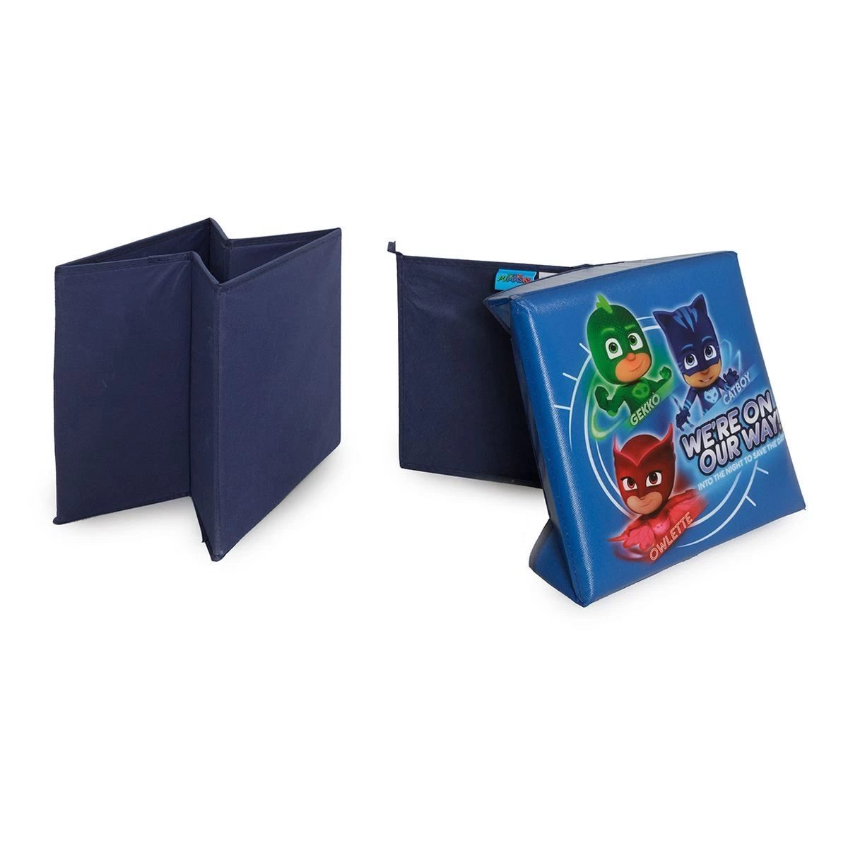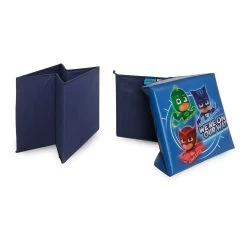 | Dettagli | La confezione contiene un pouf contenitore Struttura salvaspazio pieghevole Coperchio con cuscino stampato Stampa ispirata ai personaggi del cartoon Pj Masks Base in tinta unita blu Aiuta a mantenere l’ordine in casa Si monta in poche mosse Si può usare come contenitore o poggiapiedi Prodotto dalla licenziataria ufficiale del marchio |