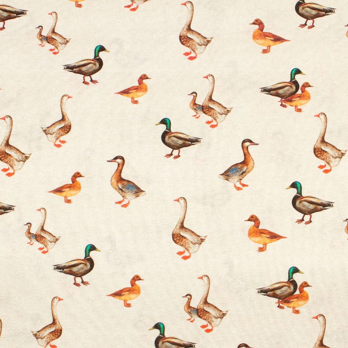 Protagoniste della particolare stampa dello scampolo Odeca sono delle simpatiche oche, i cui dettagli colorati del piumaggio contrastano con i colori delicati dello sfondo, creando armonia ed equilibrio. Questo tessuto sarà perfetto per dar vita a tante creazioni diverse per arredare casa.