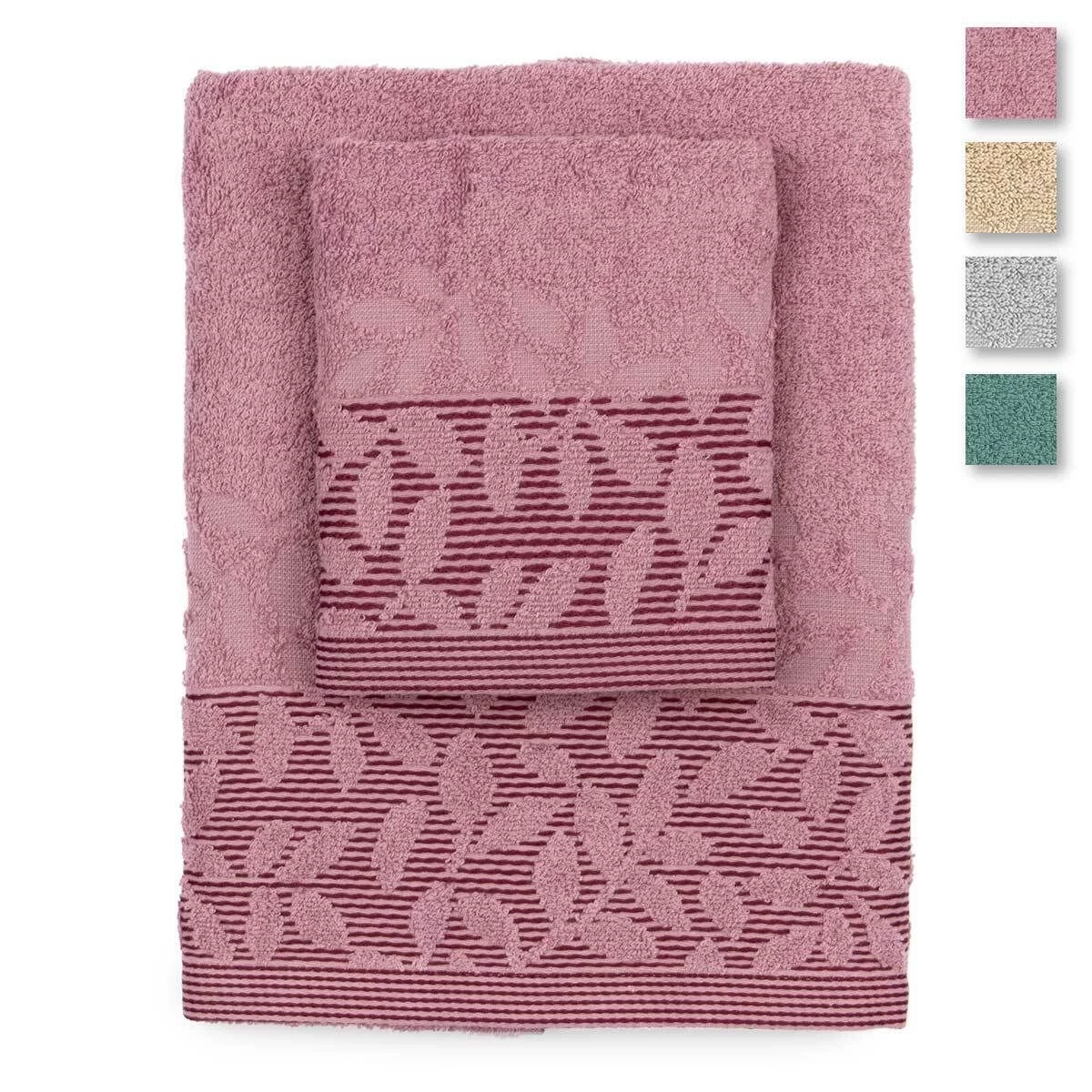 | Dettagli | La confezione contiene un set di asciugamani composto da: 1 asciugamano viso 1 asciugamano ospite Elegante motivo floreale in rilievo con bordo a righe Morbida spugna di cotone con lavorazione jacquard Certificato OEKO-TEX che attesta l’assenza di sostanze nocive per l’uomo e l’ambiente |
