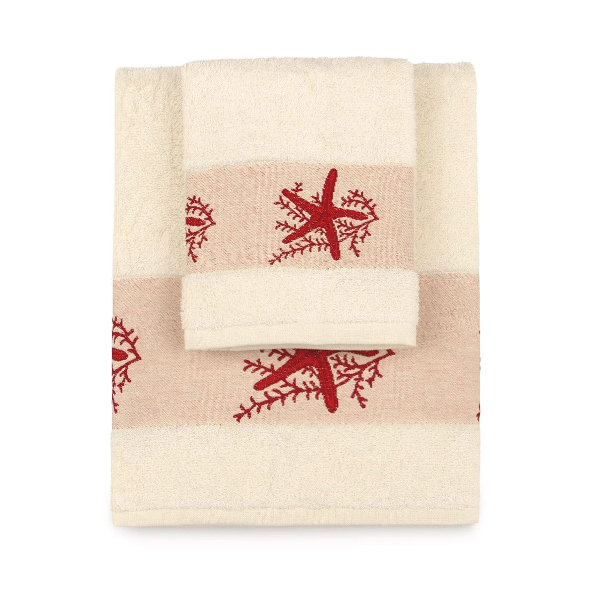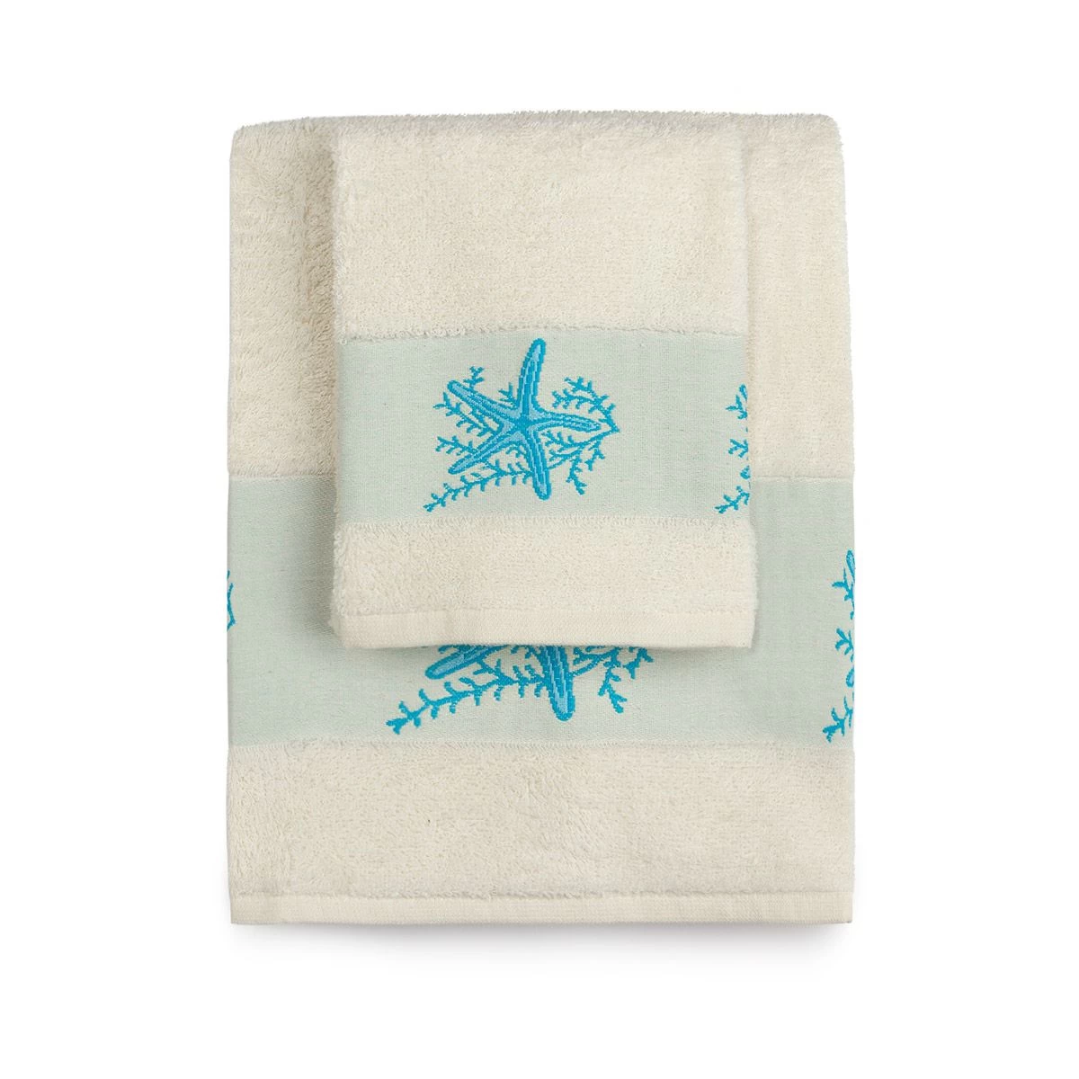 | Dettagli | La confezione contiene un set di asciugamani composto da: 1 asciugamano viso 1 ospite Grammatura spugna 400 gr/mq Bordo ricamato con stelle marine Disegnato e progettato in Italia |