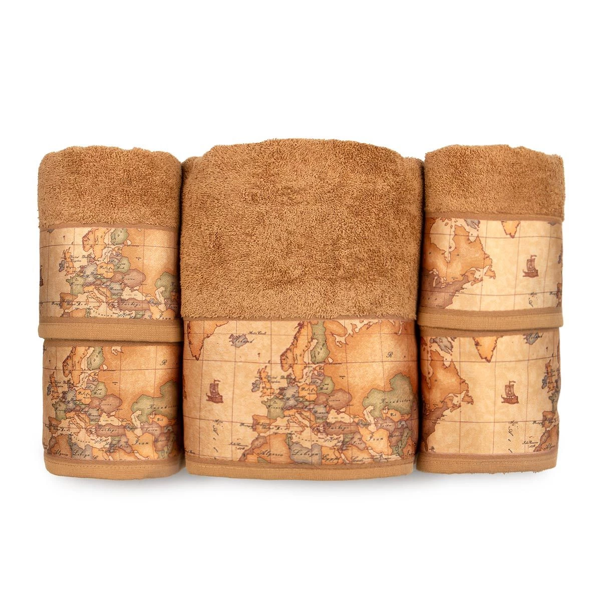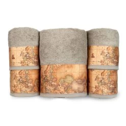 | Dettagli | La confezione contiene un set bagno 5 pezzi composto da: 2 asciugamani viso 2 asciugamani ospite 1 telo doccia Spugna puro cotone da 480 gr/mq Bordo applicato Stampa digitale di un mappamondo Morbido e assorbente Perfetta tenuta ai lavaggi e all’uso OEKO-TEX garantisce l’assenza di sostanze nocive per l’uomo e l’ambiente Made in Italy |