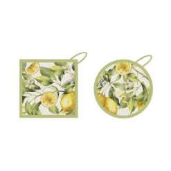 Il coordinato Zagara composto da un grembiule più due presine di diversa forma, è utilissimo in cucina. Per chi ama la freschezza dei limoni e l’asprezza degli agrumi, adorerà questi accessori.