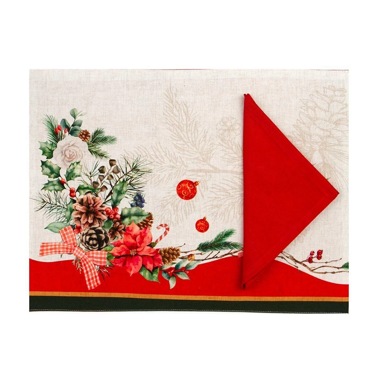 | Dettagli | La confezione contiene un set americano composto da: 1 tovaglietta all’americana 1 tovagliolo Motivo natalizio Tovagliolo di colore rosso Stampa HD ad alta definizione Adatto come decorazione di Natale Disegnato e progettato in Italia |