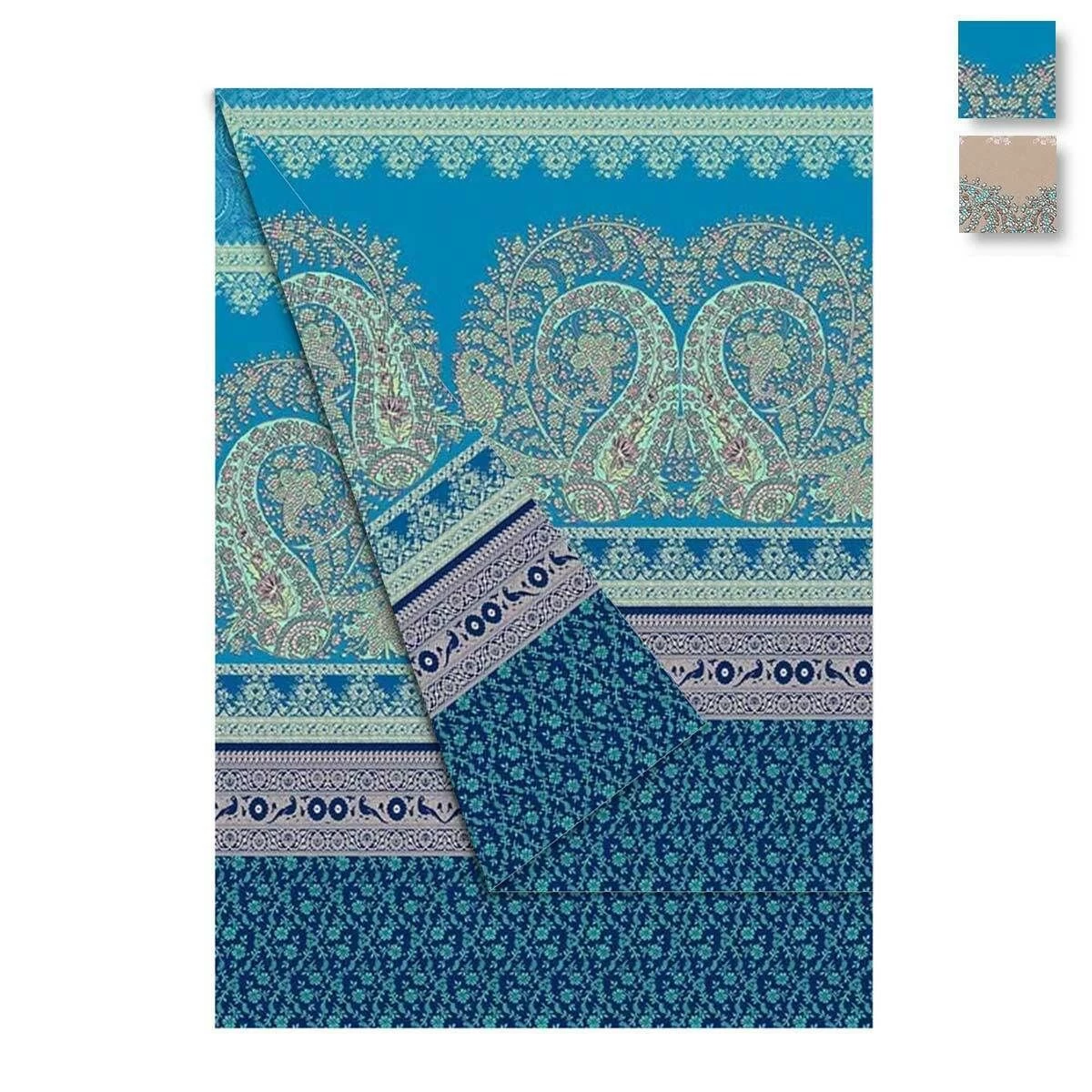 Il telo arredo Recanati di Bassetti raffigura un elegante motivo etnico. La stampa ricca di dettagli e colori cangianti rievoca infatti terre lontane dove il tempo si è fermato. La magia dell’oriente è di casa con questo telo raffinato e suggestivo.