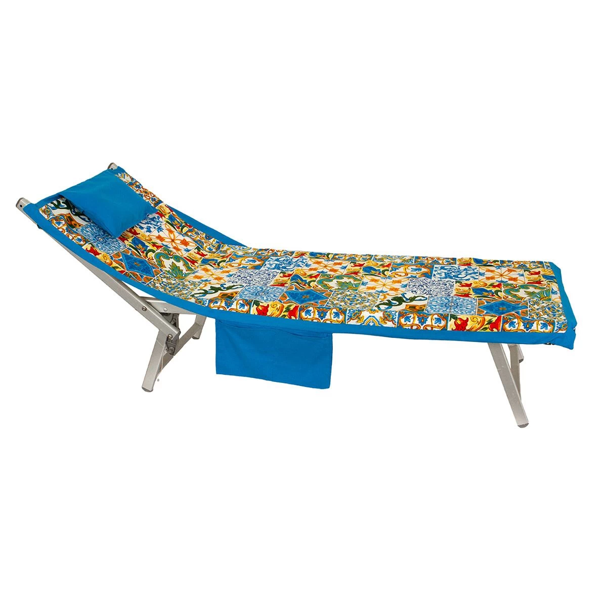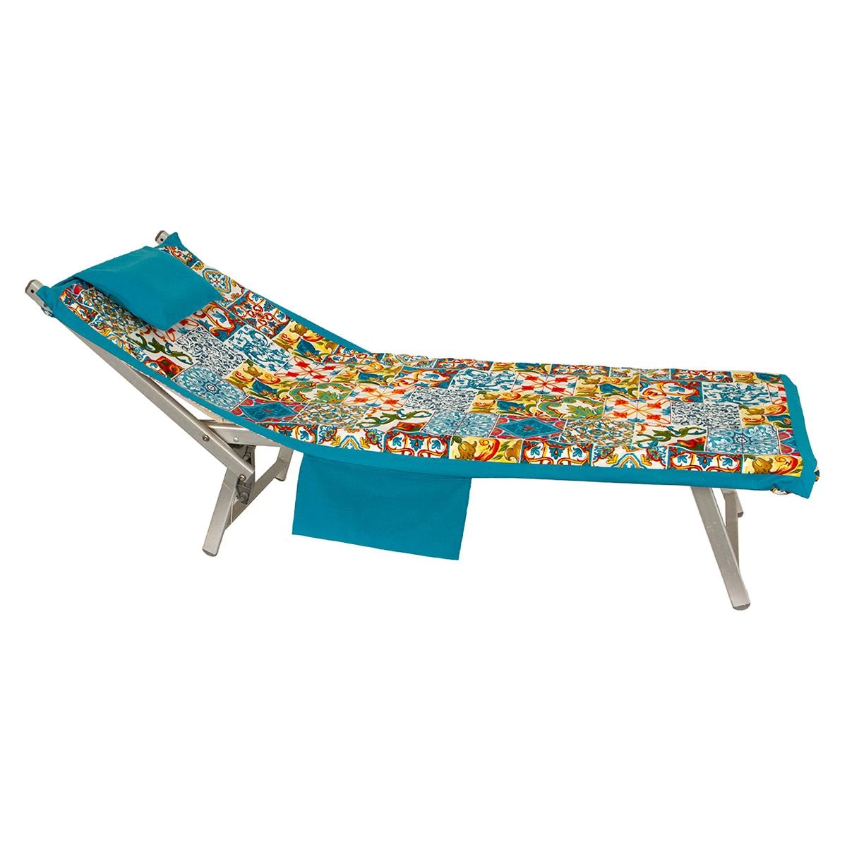 | Dettagli | La confezione contiene un telo mare coprilettino Dotato di elastici fermatelo, due tasche portaoggetti laterali ed un cuscino poggiatesta gonfiabile Stampa con maioliche Morbida e leggera microfibra salvaspazio per garantire il massimo della praticità Assorbe l’acqua velocemente e si asciuga in un batter d’occhio, diventando subito pronto per essere riposto nella borsa della spiaggia Per motivi tecnici le dimensioni potrebbero variare di qualche centimentro |