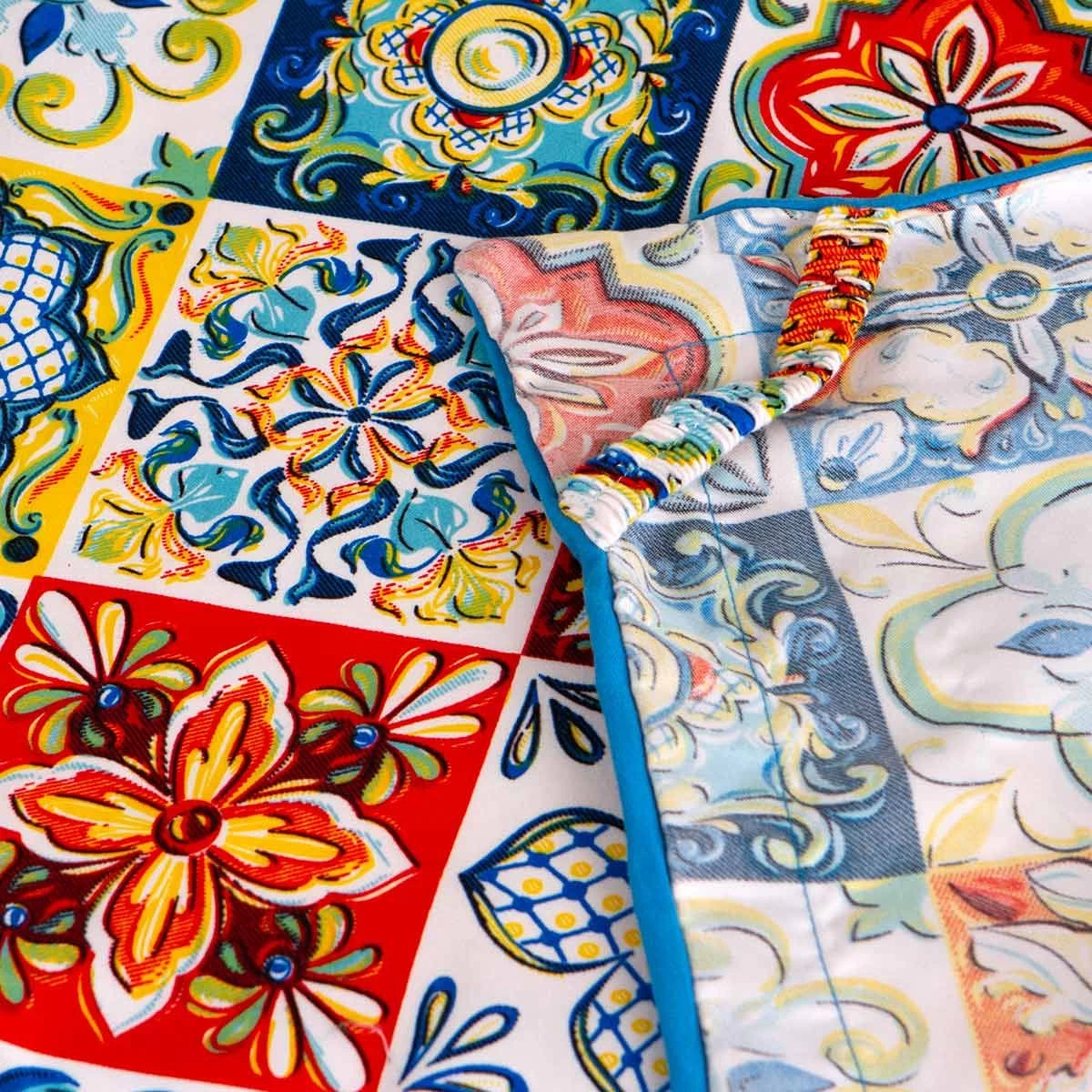 | Dettagli | La confezione contiene un telo mare coprilettino Dotato di elastici fermatelo, due tasche portaoggetti laterali ed un cuscino poggiatesta gonfiabile Stampa con maioliche Morbida e leggera microfibra salvaspazio per garantire il massimo della praticità Assorbe l’acqua velocemente e si asciuga in un batter d’occhio, diventando subito pronto per essere riposto nella borsa della spiaggia Per motivi tecnici le dimensioni potrebbero variare di qualche centimentro |