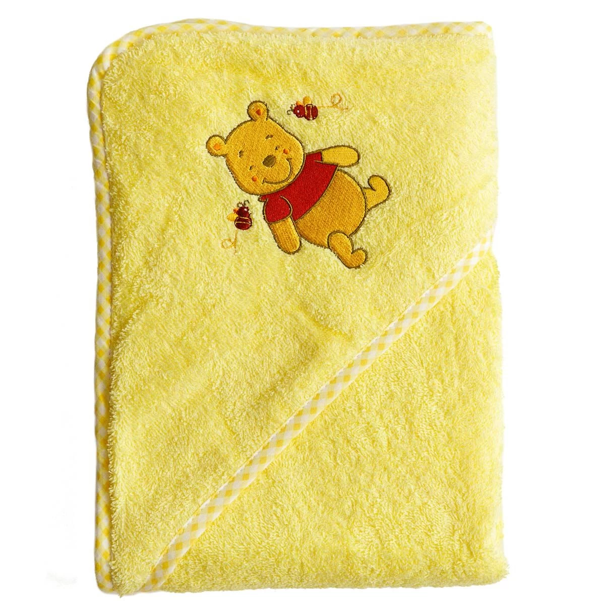 Avvolgere il proprio bimbo nel telo doccia con cappuccio di Winnie the Pooh dopo il bagnetto, gli regalerà una sensazione di benessere e morbidezza. In spugna di cotone al 100% il telo è sicuro per la pelle del bambino, mentre la stampa con il simpatico e dolce orsetto Disney lo rende un divertente spunto di gioco.