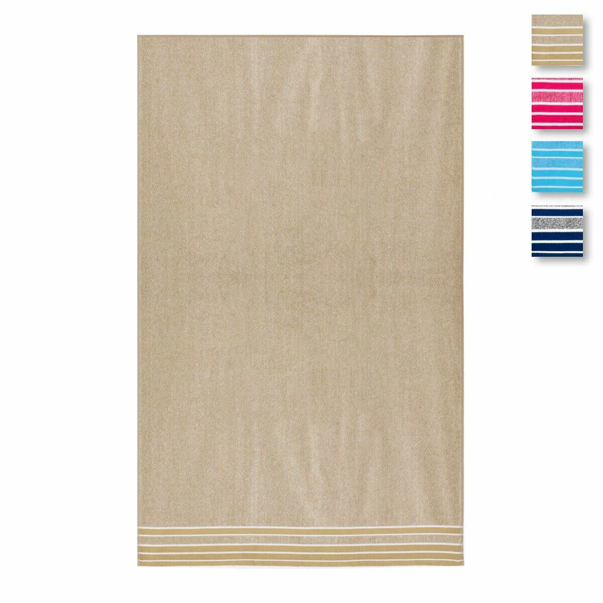 | Dettagli | La confezione contiene un telo mare e/o piscina Motivo con righe ad una estremità Spugna di puro cotone egiziano Tessuto morbido, altamente assorbente, di rapida asciugatura |