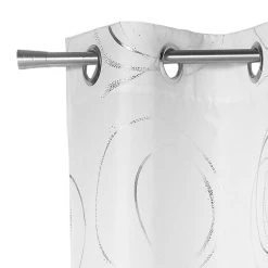 | Dettagli | La confezione contiene un pannello tenda Tessuto filtrante, leggermente coprente, ideale per proteggere la privacy; blocca il passaggio dei raggi solari ma al tempo stesso lascia filtrare la luce naturale Motivo astratto realizzato con stampa argentata Tenda confezionata con 8 anelli (borchie) metallici d’acciaio di colore argento Diametro interno borchia 40 mm Pronta per essere montata |