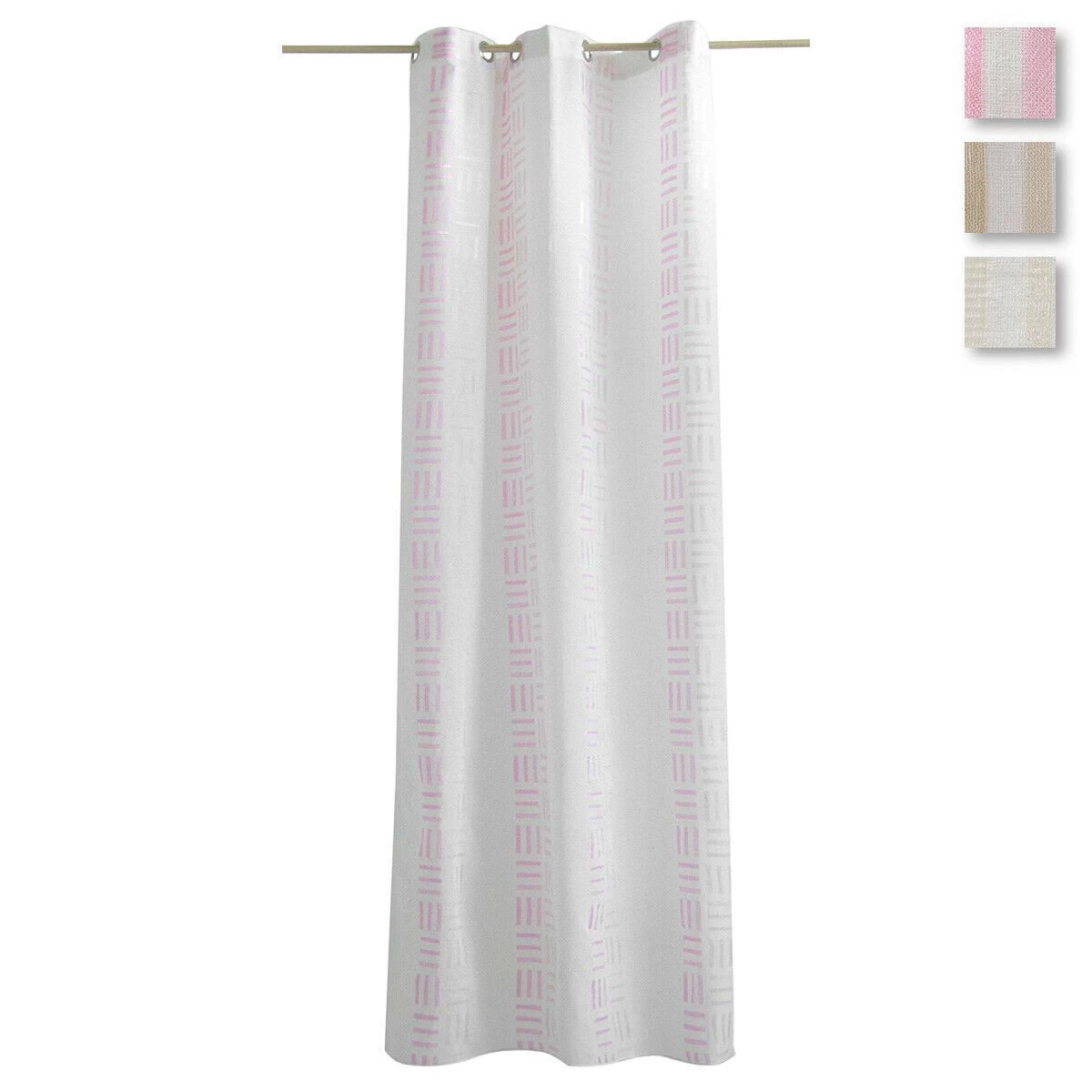 | Dettagli | La confezione contiene un pannello tenda Tessuto filtrante (semitrasparente) che lascia passare la luce, permette di guardare fuori ma allo stesso tempo garantisce la giusta privacy Effetto lino con motivo geometrico Tenda confezionata con 6 anelli (borchie) metallici di colore argento Diametro interno borchia 4 cm Completamente rifinita, pronta per essere montata |
