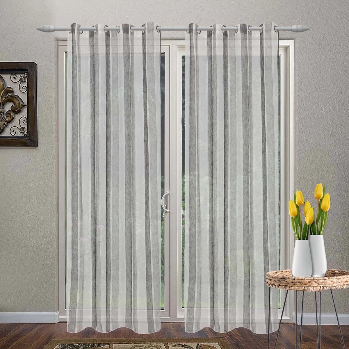 | Dettagli | La confezione contiene un pannello tenda Tessuto filtrante (semitrasparente) che lascia passare la luce, permette di guardare fuori ma allo stesso tempo garantisce la giusta privacy Effetto lino con motivo a righe e impunture a contrasto Tenda confezionata con 8 anelli (borchie) metallici di colore argento Diametro interno borchia 40 mm Pronta per essere montata Per motivi tecnici le misure potrebbero variare di qualche centimetro |