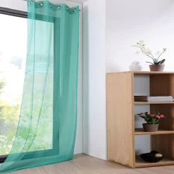 | Dettagli | La confezione contiene un pannello tenda Tessuto trasparente che lascia passare la luce Tenda confezionata con 8 anelli (borchie) metallici di colore argento Diametro interno borchia 40 mm Pronta per essere montata |