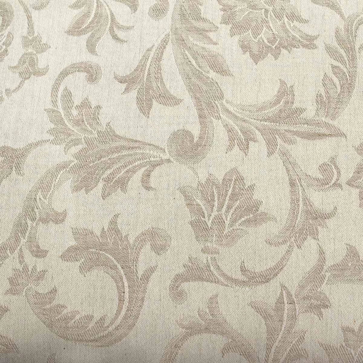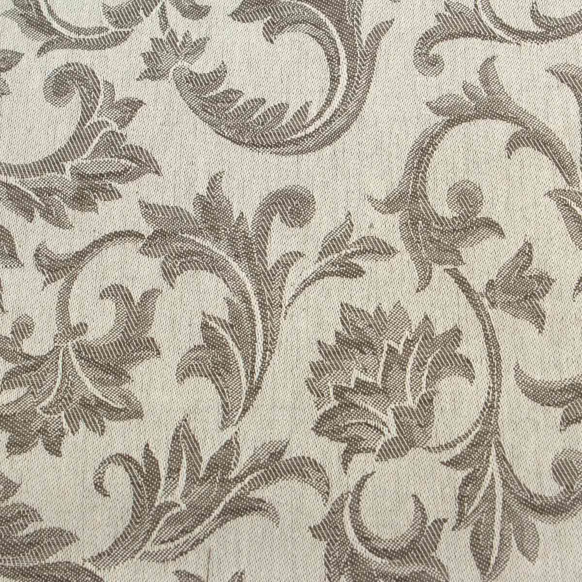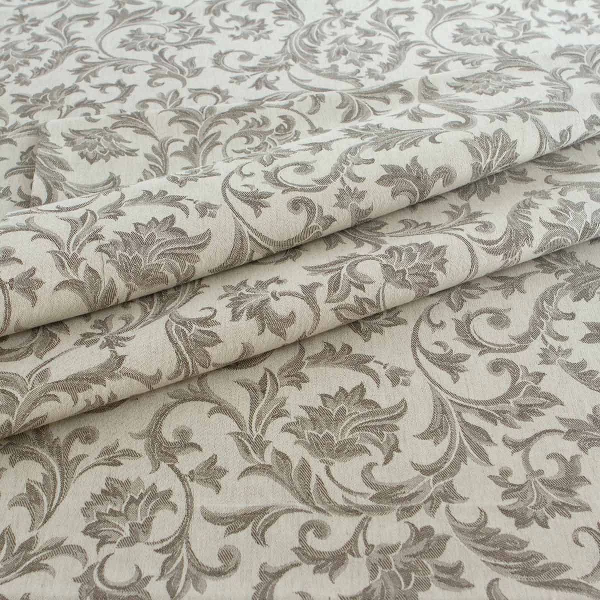 Se sei alla ricerca di tessuti eleganti e raffinati per realizzare una tovaglia su misura questo è il tessuto adatto. E’ realizzato con fibre di lino, che conferiscono eleganza, e fibre di cotone, che conferiscono morbidezza, ed è caratterizzato da una particolare lavorazione jacquard con motivo arabesco.