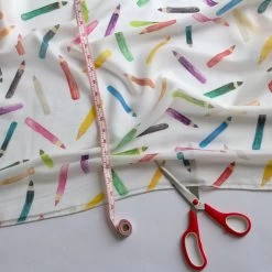 | Dettagli | Stoffa ideale per tendaggi in camera da letto, cameretta, soggiorno o altri ambienti Altezza standard 315 cm Semitrasparente Lavorazione devorè e stampa digitale Fondo bianco con stampa multicolor di matite Orlo inferiore con filo di piombo Vendita al metro Made in Italy |
