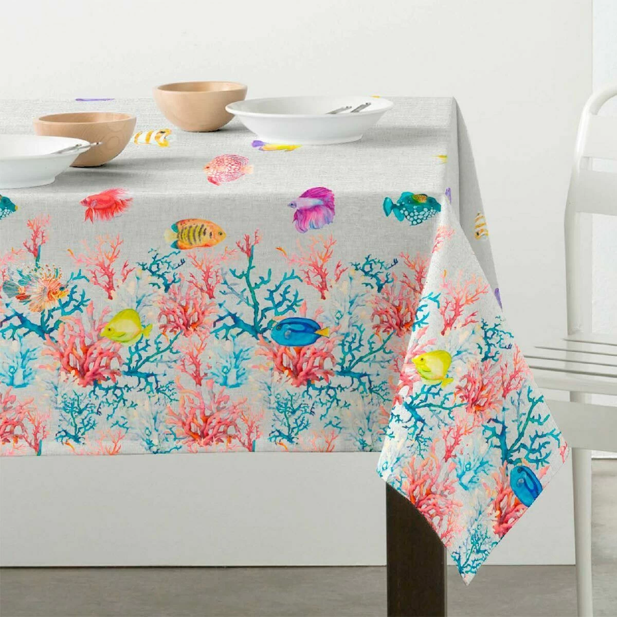 Un acquario costituisce un importante elemento d’arredo, adornando l’ambiente con stile e dinamismo. Con la sua stampa digitale ad alta definizione, questa tovaglia di Morbidissimi riproduce in modo vivido l’atmosfera di un acquario, risultando un accessorio di grande impatto visivo oltre che pratico.
