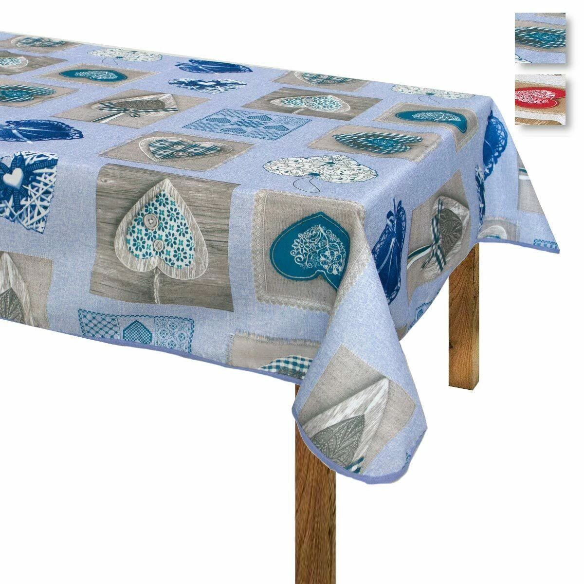 | Dettagli | La confezione comprende una tovaglia da tavola Forma rettangolare Stampa stile shabby con motivo a cuori Bordo in coordinato di colore Trattamento antimacchia Si pulisce semplicemente con un panno umido Non è necessario stirare |