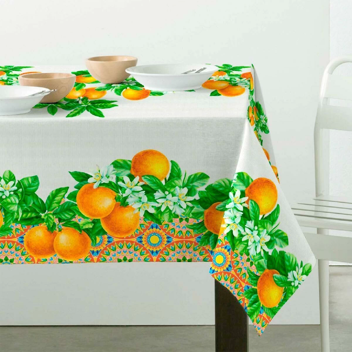 La vivacità dei colori delle arance adornerà la cucina con brio grazie alla tovaglia firmata Morbidissimi, che si rivela un vero e proprio elemento d’arredo oltre ad essere una protezione per il tavolo. Il puro cotone panama è consistente e robusto, ed esalta la brillantezza della stampa digitale.