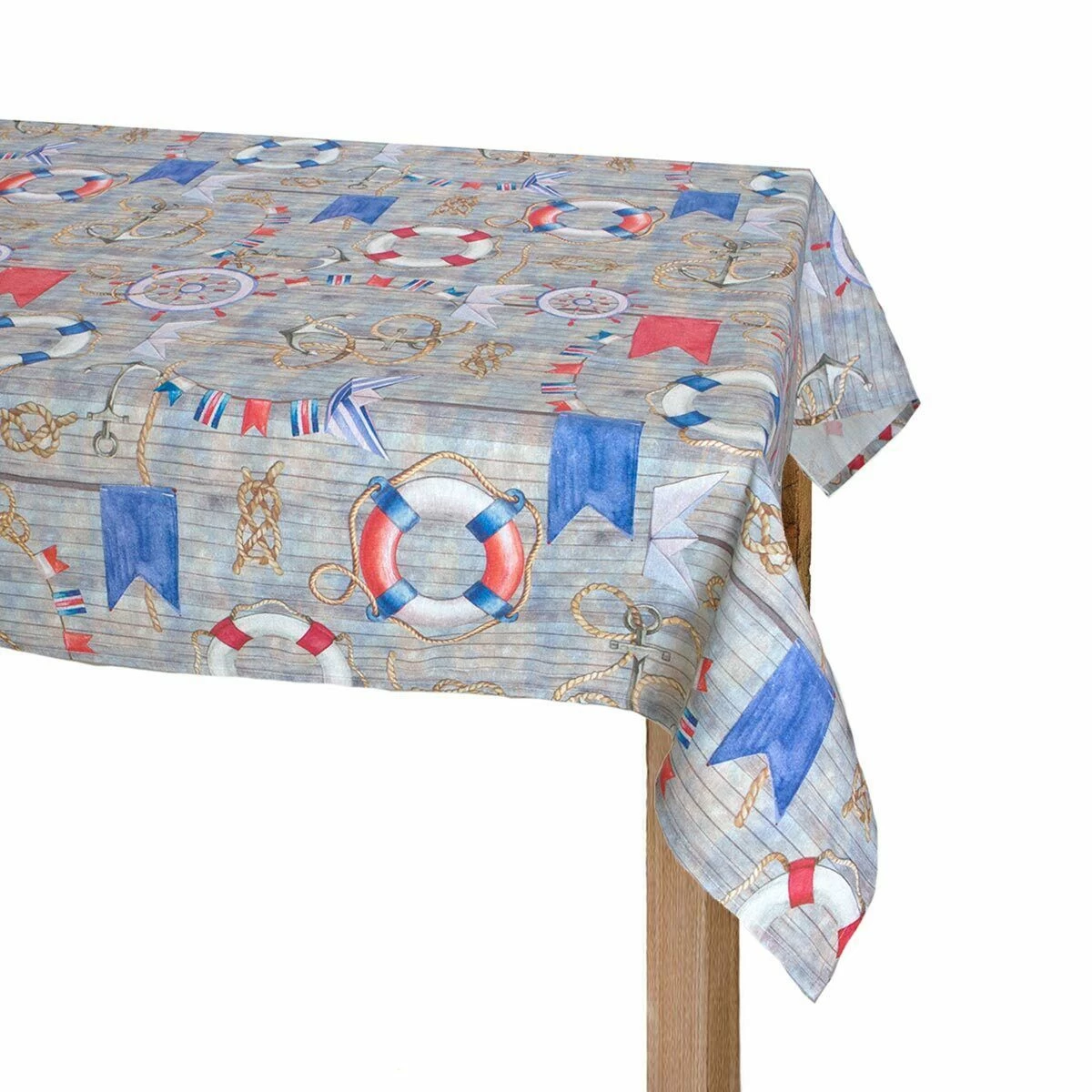 | Dettagli | La confezione contiene una tovaglia da tavola Motivo marino con timoni, salvagente, nodi marinari, e ancore Stampa digitale Cotone loneta, robusto e coprente Peso 190 gr/mq Made in Italy |