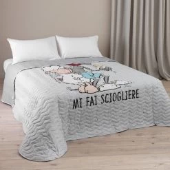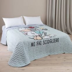 | Dettagli | La confezione contiene un copriletto trapuntato Stampa romantica Scritta “mi fai sciogliere” Trapuntatura ad onde Imbottitura in fibra anallergica 100 gr/mq Ideale per il periodo primaverile e autunnale Made in Italy |