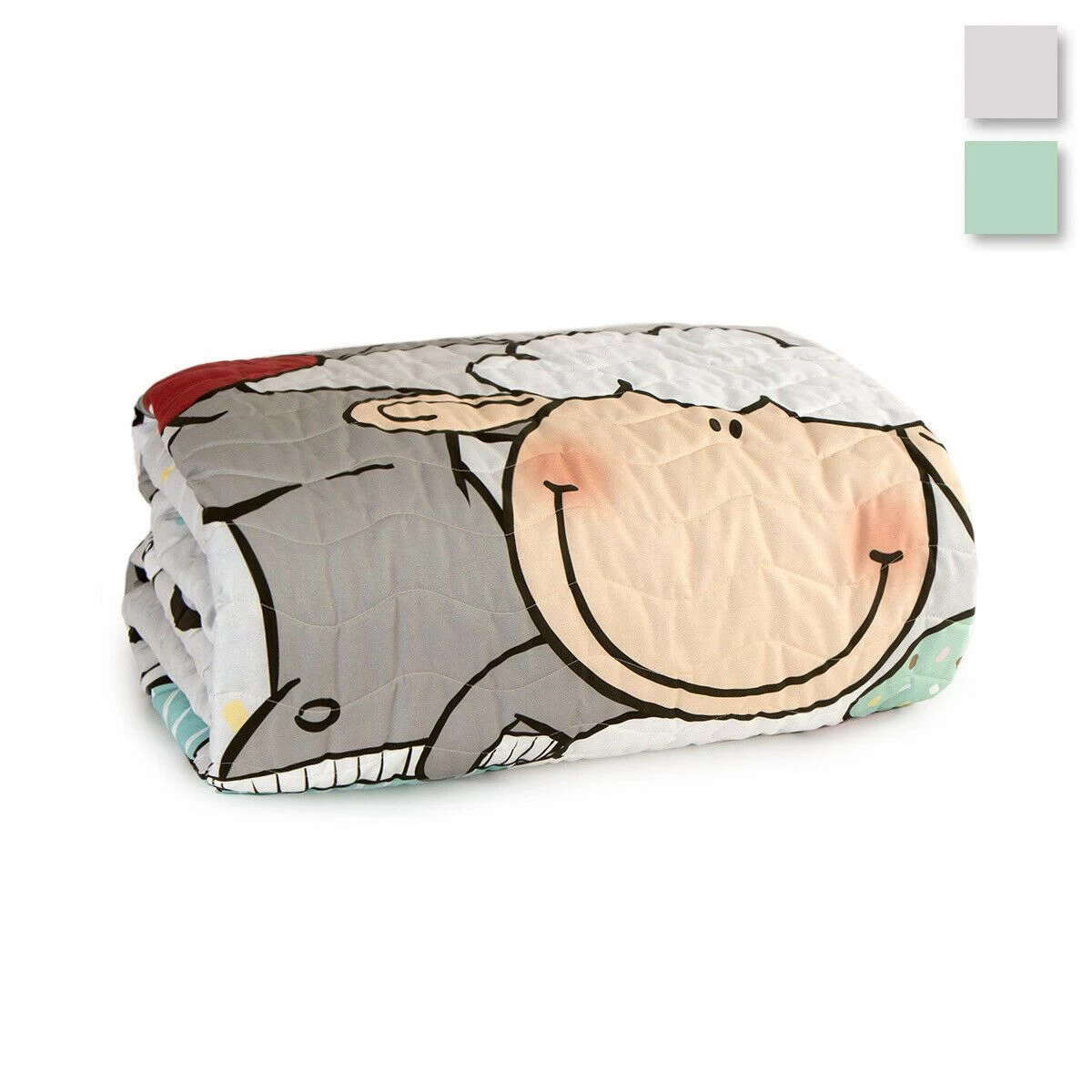 Il trapuntino Mi Fai Sciogliere di Happy People è prodotto in puro cotone stampato. L’imbottitura in soffice fibra anallergica è confortevole e ideale per le mezze stagioni, e l’inconfondibile stampa Happy People con la tenera pecorella e il lupo dona all’arredamento un’aria romantica.