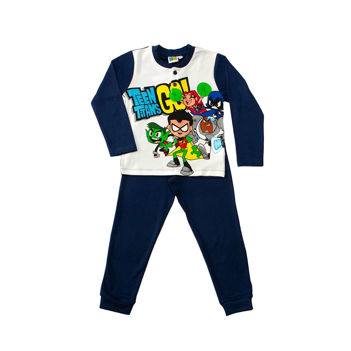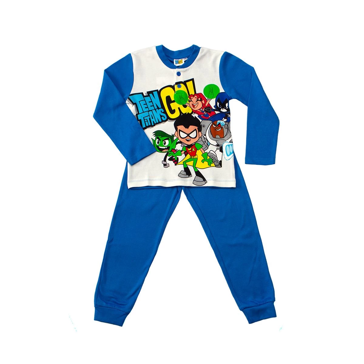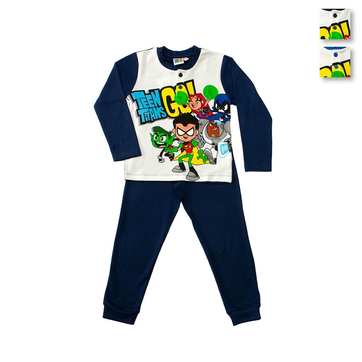 | Dettagli | La confezione contiene un pigiama per bambino composto da: 1 maglia stampata scollo serafino a due bottoni con polsini elasticizzati 1 pantalone tinta unita con elastico in vita e polsini elasticizzati Stampa dei personaggi del cartone animato Teen Titans Morbido caldo cotone ideale per il periodo invernale Prodotto dalla licenziataria ufficiale del marchio |
